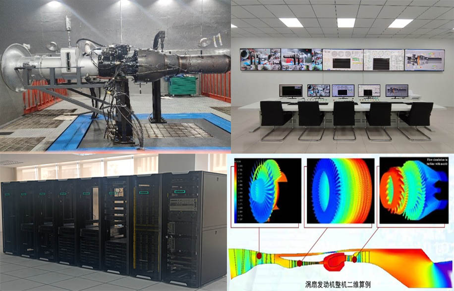 小型燃气涡轮发动机整机装配及试验测试平台、高性能集群计算机系统、燃气涡轮发动机结构高温多轴力学性能试验系统、燃气涡轮发动机结构振动特性及减振机理验证平台、榫连接结构微动疲劳机理测试及验证平台、折流燃烧室甩油雾化机理分析及测试平台、高速低温总温测试平台、叶尖振动测试系统等。