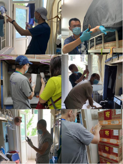 分党委积极响应号召,6个教师党支部的党员同志、教师志愿者和辅导员爱心、耐心、细心地以视频直播的方式与学生沟通,用一天的时间高效完成了2020届本科毕业生行李打包工作。期间,学校党委副书记程波、学生工作部部长董卓宁、研究生工作部部长宋晓东等领导到公寓楼内慰问。