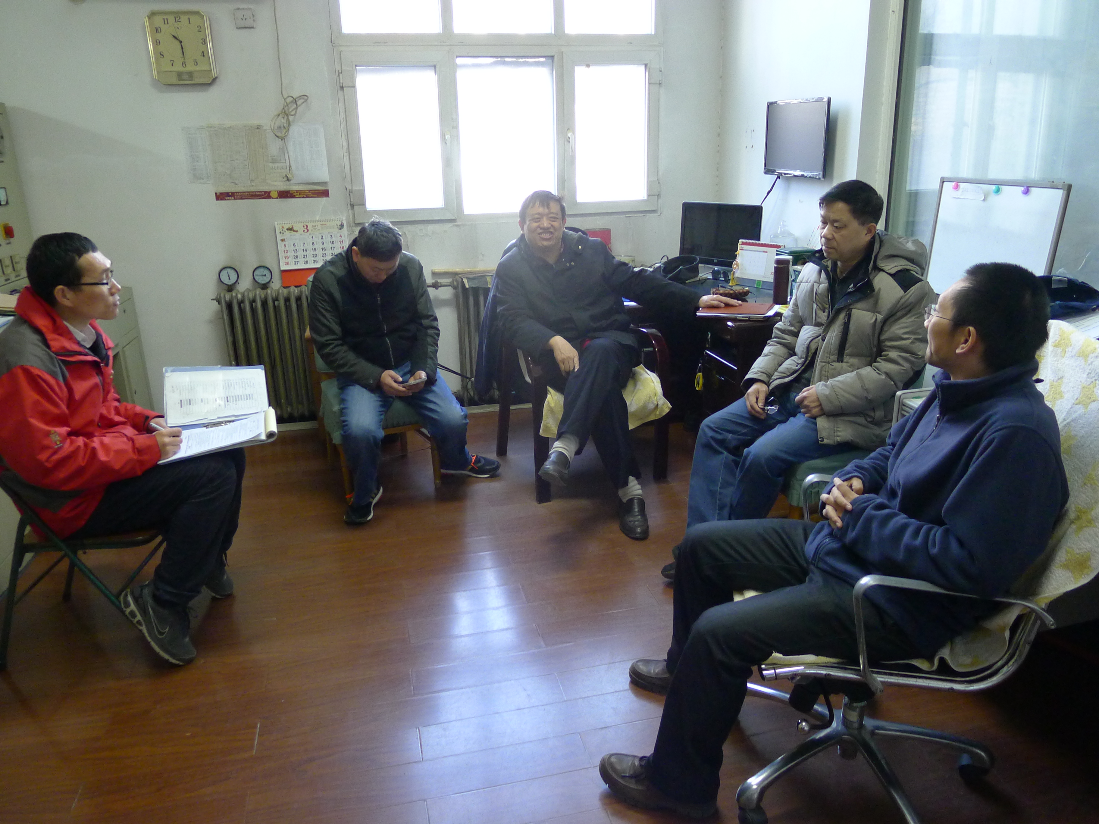 检查小组一行对热动力研究所管辖的气动燃烧实验室、压气机站、小活塞发动机实验室及环境设施进行了安全检查。经过上学期的检查和隐患排除,上述实验室在安全操作、和环境卫生上大有改观;目前主要存在的问题有:有些特种设备及大型气罐未安要求将定期检测证书张贴在瓶体显著位置、个别实验室安全责任人指示牌未上墙、安全管理制度按要求张贴等问题。保卫处领导对实验室线路安全及灭火器的安全使用进行了现场指导和示范。最后检查组针对热动力所目前急待解决的实验室技术管理人员编制及环境问题征询了所领导的意见。