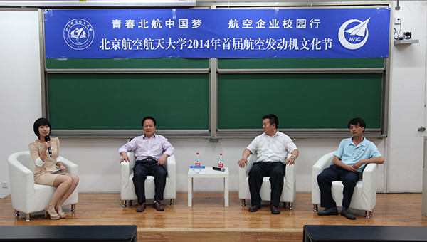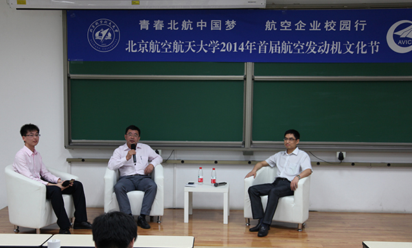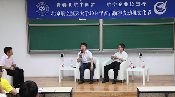 和中国航空工业集团公司联合主办的“青春北航中国梦·航空企业校园行”首届航空发动机文化节之航空发动机企业高管访谈在沙河校区3号教学楼顺利举行。
