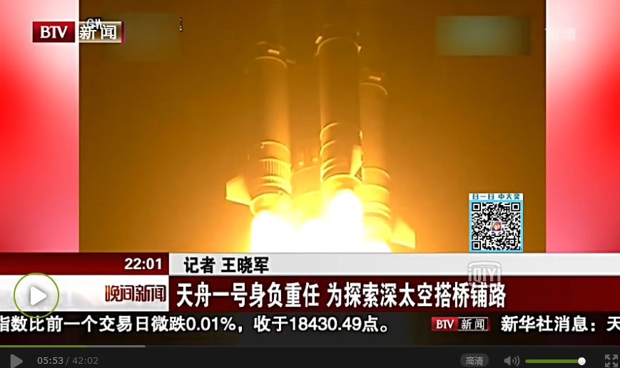 编者按:2017年4月20日19时41分,天舟一号货运飞船经由长征七号遥二运载火箭托举,成功进入太空。约596秒后,飞船与火箭分离,进入预定轨道,标志着此次发射取得圆满成功。北京电视台2017年4月20日的《晚间新闻》报道了天舟一号的发射情况,其中以《天舟一号身负重任 为探索深太空搭桥铺路》为题深度报道了北航人在天舟一号的研制与发射过重所做的贡献,并采访了耽美漫画