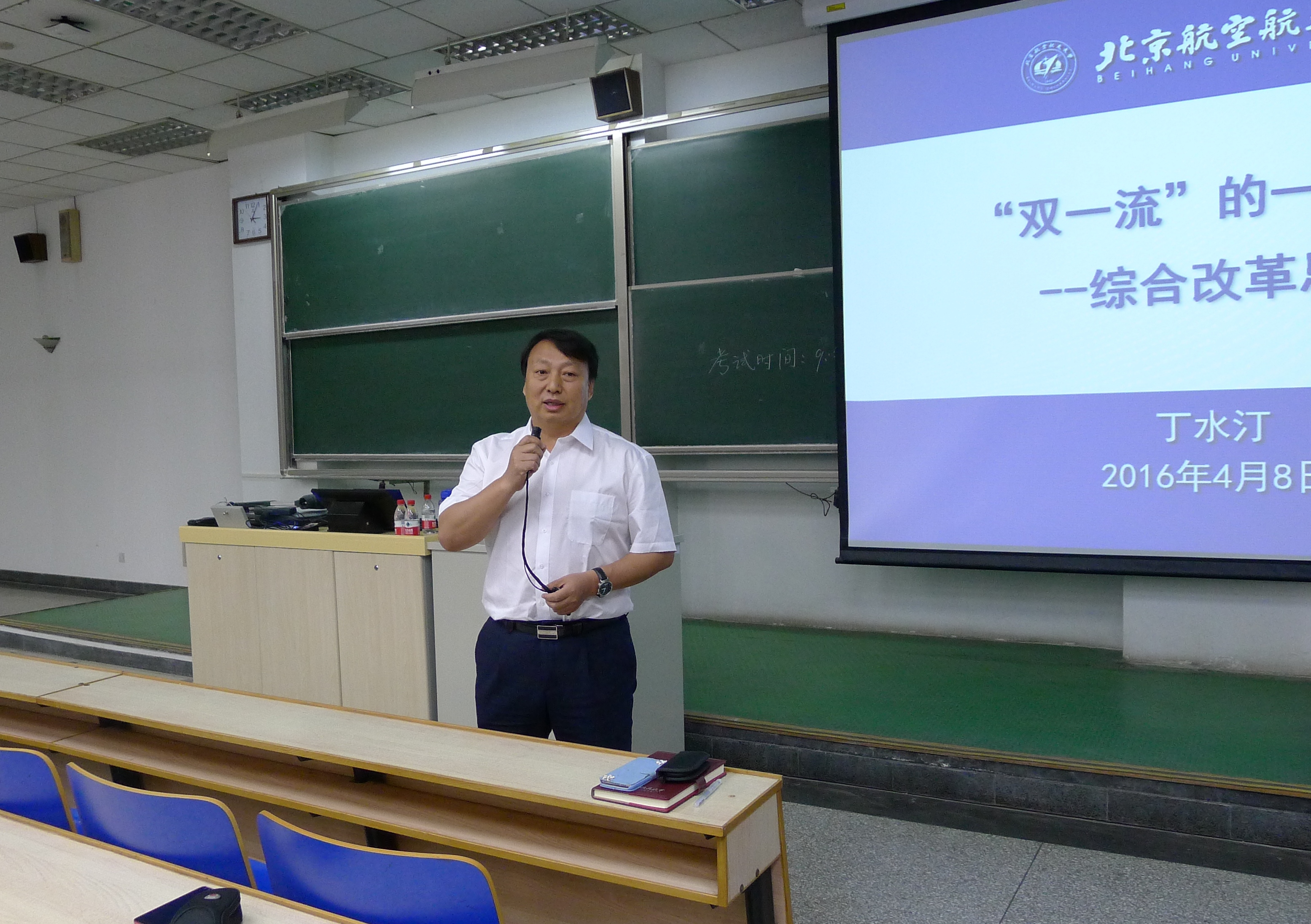大会上,丁水汀院长做了题为“双一流的一点思考——综合改革思路”的主题发言。在发言中,丁院长指出了高等教育的“人才摇篮”、“研究基地”、“国家智库”和“国际平台”四大定位。作为国家科技创新和发动机行业的“人才摇篮”,其功能是培养向自主创新转变急需的拔尖创新人才,为国家科技发展提供不竭动力。作为高水平“研究基地”,其功能是开展重大基础研究,产生原始创新,引领未来发展;承担关键技术攻关,解决重大瓶颈,支撑行业进步。作为“国家智库”,其功能是提出国家经济社会发展战略的重要咨询报告,为国家科技转型发展做出历史性贡献;作为“国际平台”,其功能是融合中西方文化,为实现“中国特色、世界一流”的目标构建学术高地。学校在积极打造“双一流”,学院也要结合发展目标和自身的特色、围绕以上“四个定位”打造学院的“双一流”。学院将围绕上述四大发展需求,激励全院每一位教师在围绕国家重大战略需求和国际学术前沿的第一象限投入精力和时间,充分抓住国家实施航空发动机重大专项的历史机遇,在做出重大贡献的同时,争取国家级科技奖励;通过分析社会和行业对人才的需求,践行“校企协同培养航空发动机高端人才行动计划”,稳步推进国家试点学院综合改革;通过分析国际学术前沿的需求,调整高水平文章发表的“靶位”,提升ESI学科排名,争取“国际学术奖”;通过分析教育部对学科评估的需求,提升学院所承载学科的国内及国际排名。2016年,学院将全面启动“小学院,大外围”下的人才评聘综合改革,按照教学科研系列、研究系列、实验室系列、职员系列等四个系列,推动实现教师“分类卓越”。报告的最后,丁水汀院长强调指出:改革创造未来,不忘初心,方得始终;学院在未来的发展中,要确保“内涵为本,协同增效”,以“散薪、散利、散财”谋求“聚心、聚力、聚才”;坚持“一张蓝图干到底,打造两张新名片”。