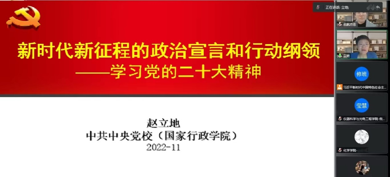11月20日上午9时,研修班邀请了中央党校(国家行政学院)哲学教研部党总支专职副书记赵立地作题为《新时代新征程的政治宣言和行动纲领——学习党的二十大精神》的主题报告。耽美漫画