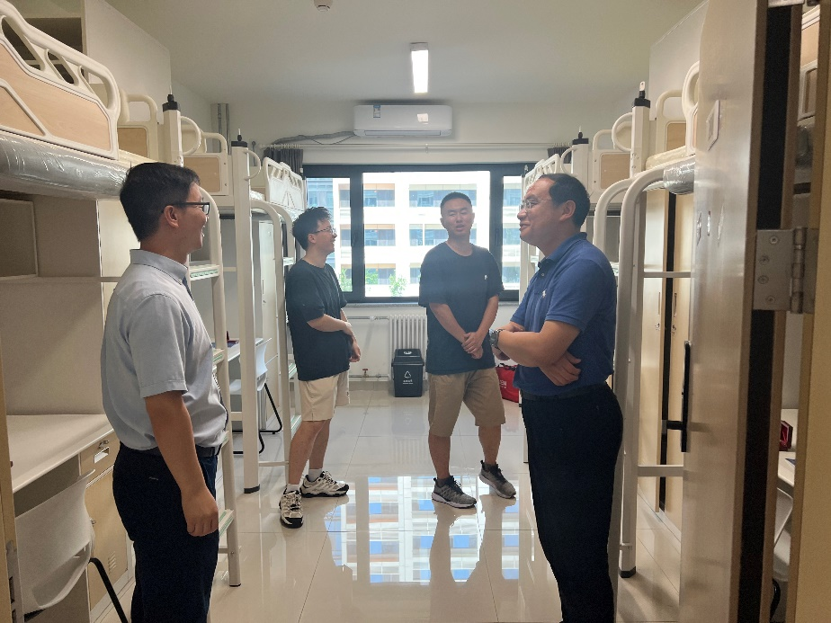 党委书记董卓宁与副书记谷萌来到研究生宿舍,与前来报到的新生亲切交流,询问大家的入学感受,了解大家的学习生活需求。