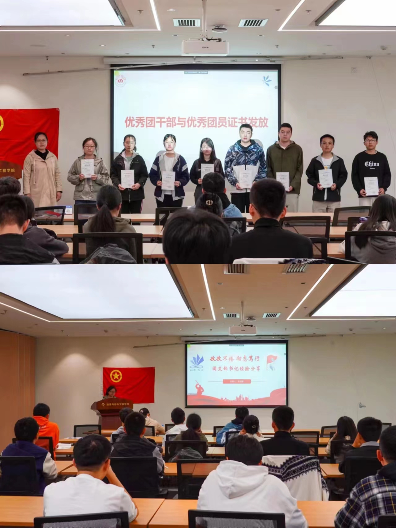 接下来,李天韵分别为活力团支部、标兵团支部和优秀团支部以及优秀团干部与优秀团员代表颁奖,并合影留念。