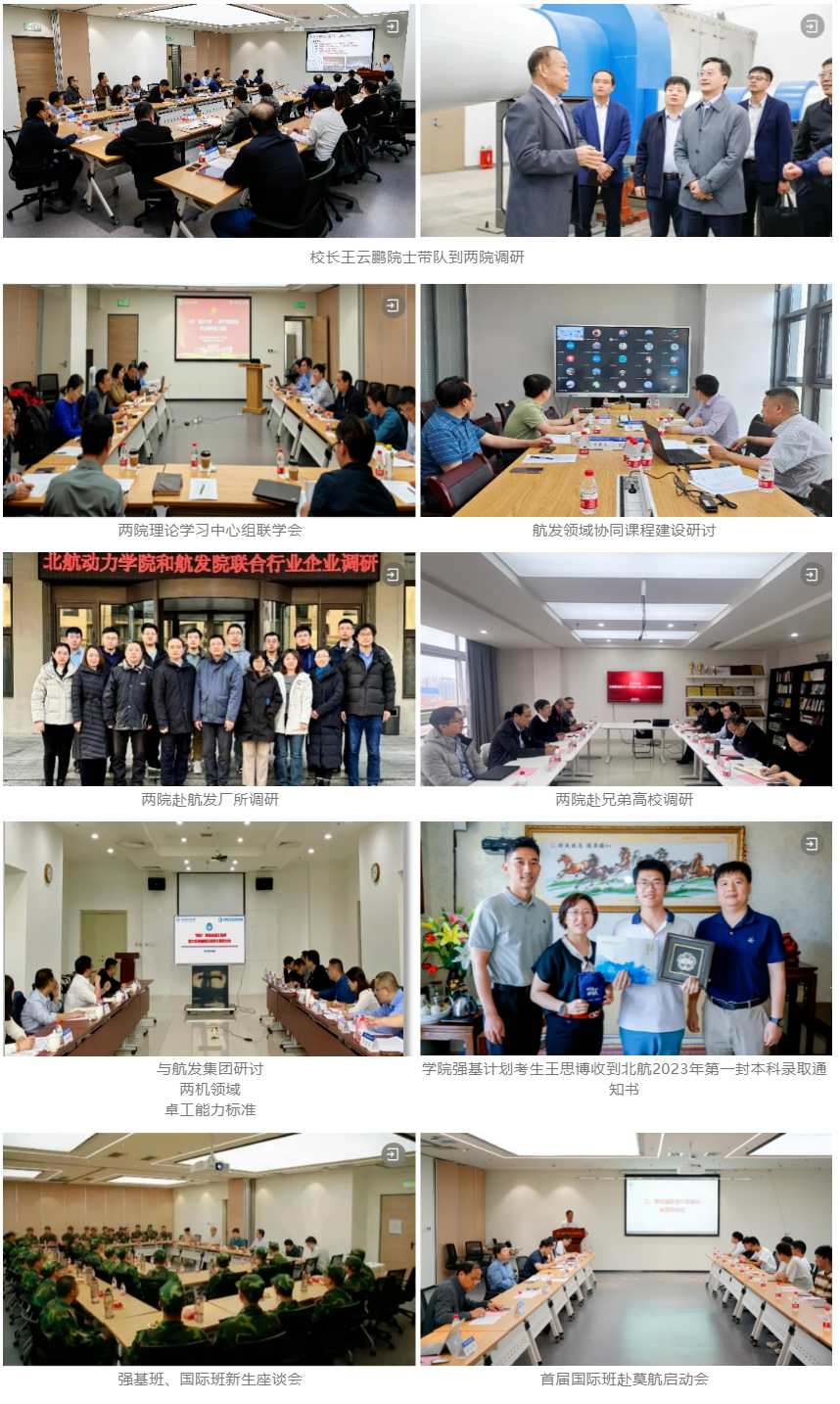 与航空发动机研究院(以下统称“两院”)3次召开理论学习中心组联学会,围绕人才培养等工作展开深入研讨。组成联合行业企业调研团,赴动力所、燃机公司、黎明公司、动力公司等及西安交大能动学院、西工大动能学院等兄弟高校开展调研。共同牵头建设教育部两机领域卓越工程师核心课程体系,建设15门核心课程,培养卓工研究生34人。3门课程获国家级一流本科课程认定,6本教材入选教育部战略性新兴领域“十四五”高等教育教材。获33项校级以上教学表彰,其中校级教学成果奖6项。改革吴大观班培养模式,形成吴大观英才班、强基班、国际班差异化实验班培养体系,推进本研一体化,着力培养航空动力和能源领域能够解决复杂系统工程问题、探索科学前沿的领军领导人才。