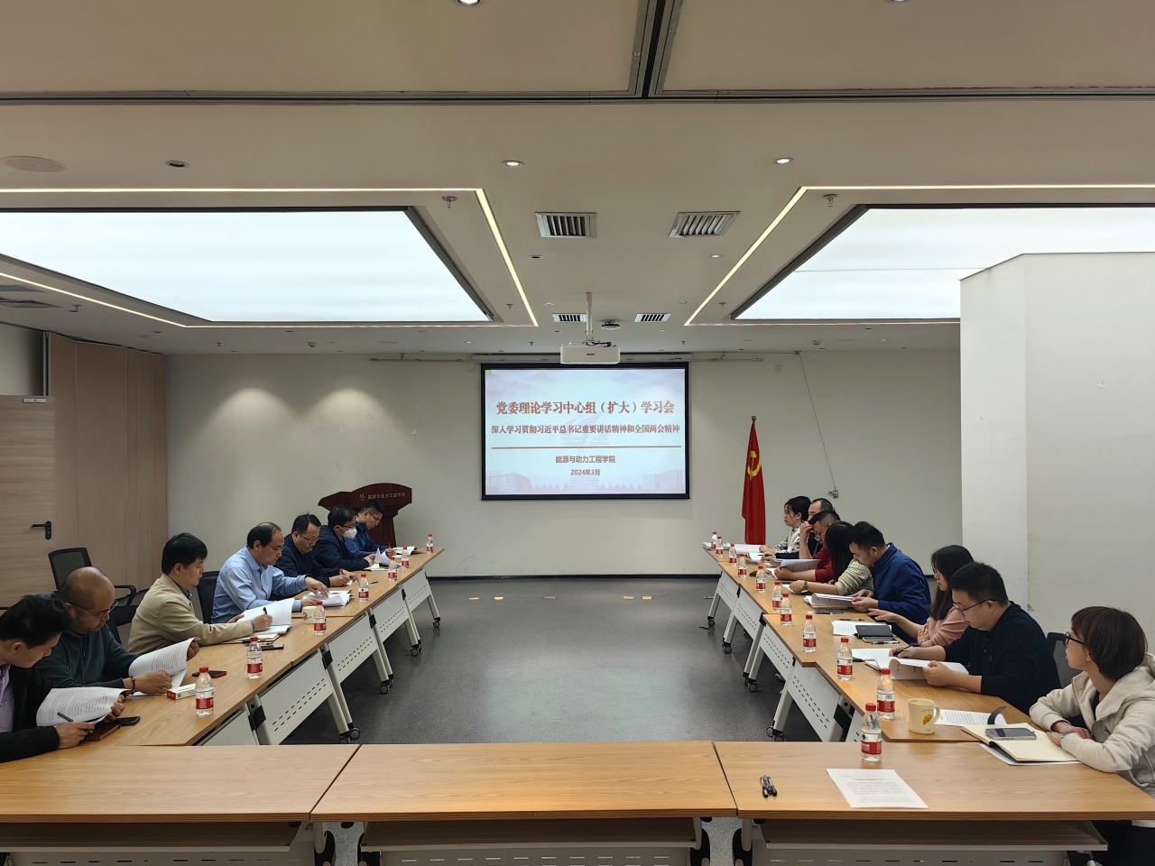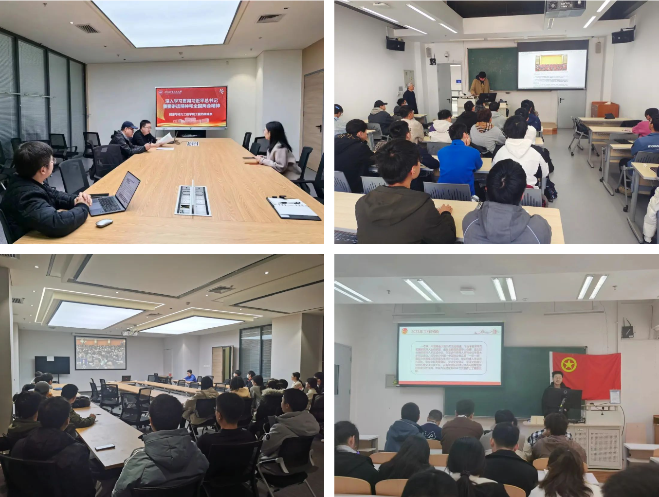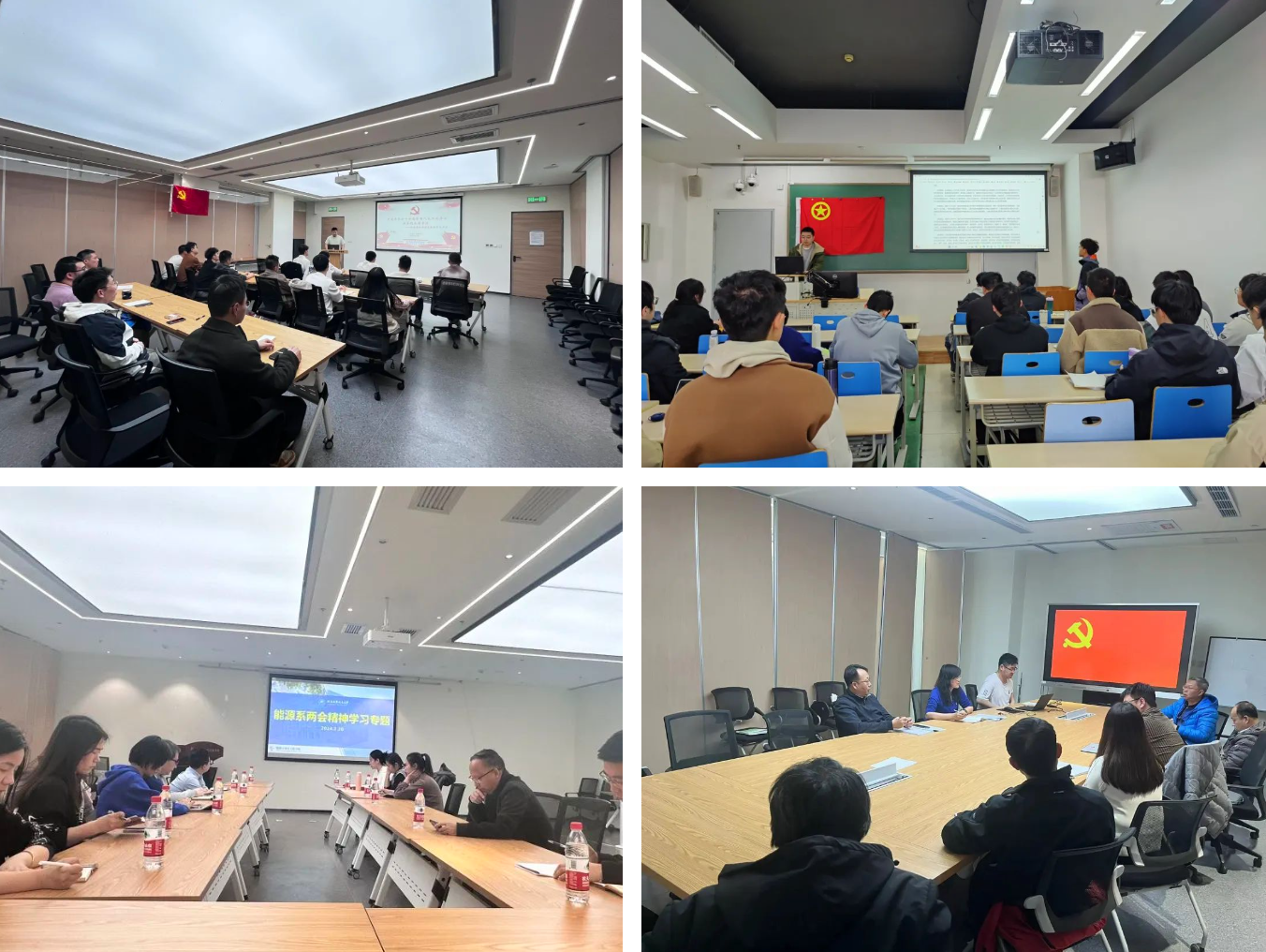 全院教师以支部系所、学生以支部班团为单位,召开学习贯彻全国两会精神专题“学习日”,学院班子成员列席所联系支部学习,进行现场指导。