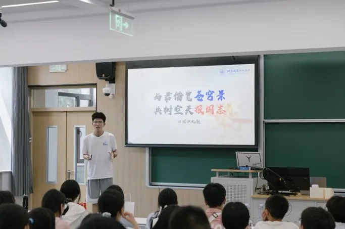 分团委书记李天韵带来“向北航行,一路华章”专题宣讲,同时结合自己在北航的学习工作经历为同学们展示了今日北航的办学特色及北航与四川的缘分故事。