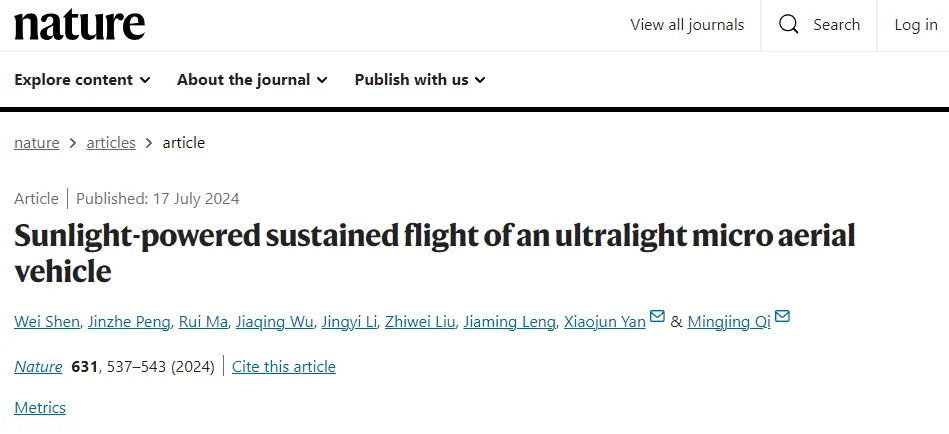 在本成果之前,此领域的最高水平成果是哈佛大学2019年在Nature发表的Robobee飞行器,但仍需采用人工光源(三倍太阳光)才能实现持续飞行,而本成果仅依靠自然光即可实现持续飞行,可极大拓展此类飞行器的使用范围,在微型飞行器的发展进程中具有里程碑意义。