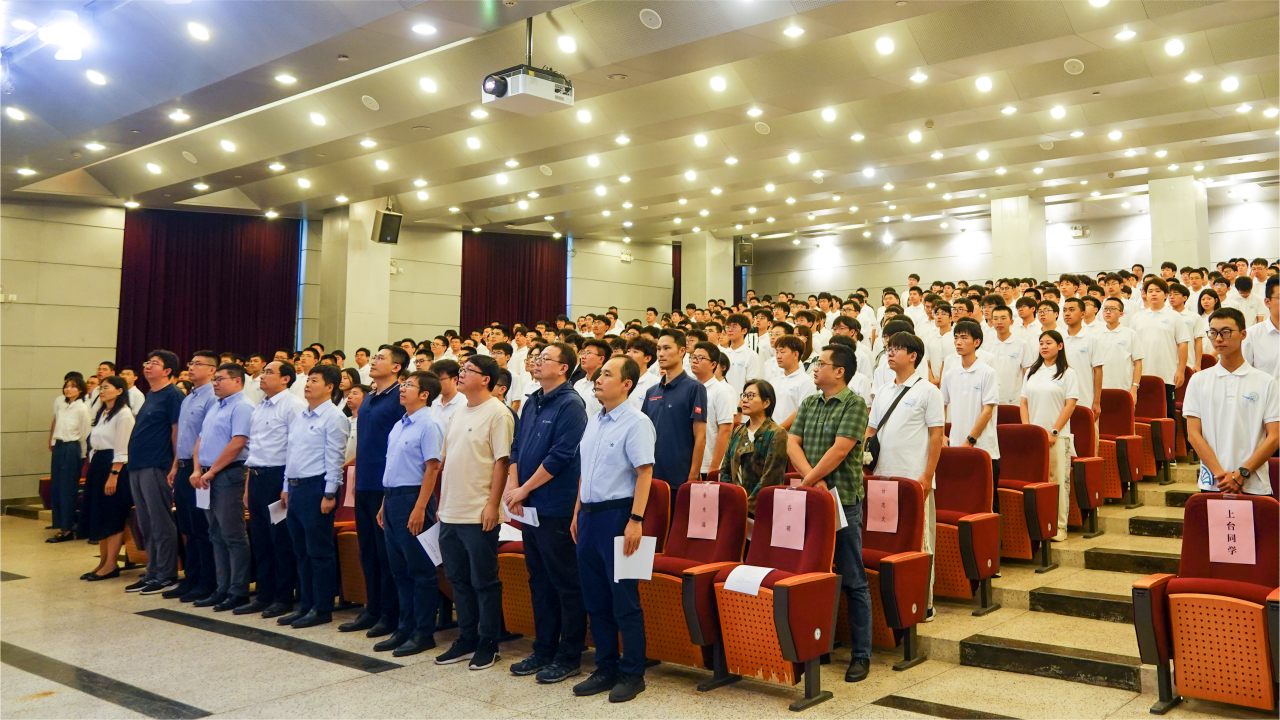 院长闫晓军代表学院全体师生,对新生的到来表示热烈的欢迎和衷心的祝贺,他勉励大家珍惜大学时光,勇敢追梦。新征程开始,新使命已然在肩,三代动力人薪火相传,凝聚形成“自强中国心”精神,期望同学们传承“中国心”,坚定理,信念,厚植家国情怀,坚持终身学习,锤炼过硬本领,做到团结协作,汇聚同心力量。