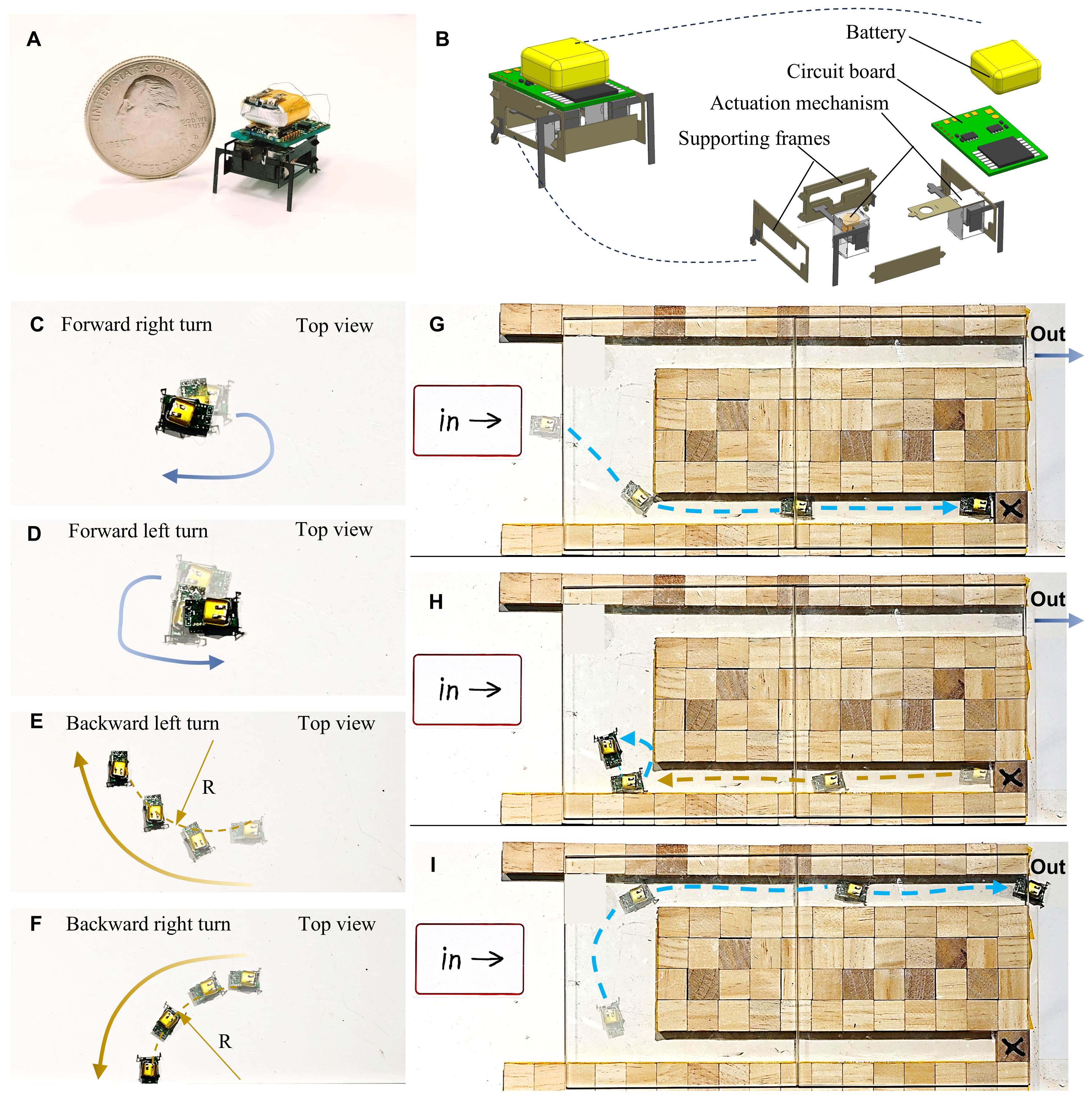 闫晓军教授和刘志伟副教授研究团队在微型动力领域再获重要进展。继今年5月8日北航机器昆虫研究成果登上Nature子刊后,近期北航机器昆虫又登上Science子刊。在北航机器昆虫BHMbot(BeiHang Microrobot)原型机的基础上,团队提出一种基于振动模态变换的机器昆虫“前跑”和“倒跑”控制方法,成功解决了微型机器昆虫进入狭窄封闭单向通道(宽度不足以实现转弯掉头)、原地无法快速后退的难题,实现了2cm微型机器昆虫的前进、后退双向快速运动、无线控制和传感器集成验证。2024年10月25日,相关研究成果以“Forward and Backward Control of An Ultrafast Millimeter-Scale Microrobot via Vibration Mode Transition”为题在线发表于《科学•进展》(Science Advances)杂志。