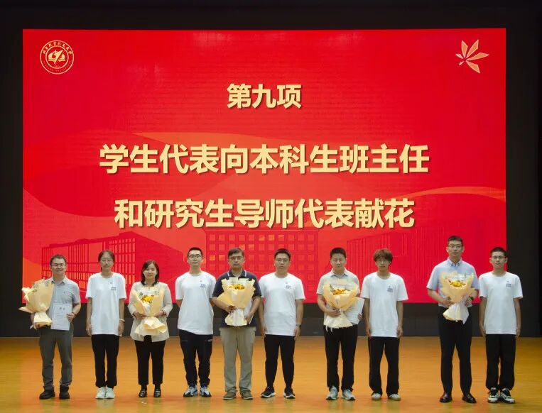 学生代表为班主任和导师代表献上鲜花一束芬芳。不仅承载着学子们深深的感激,更是对老师们无私奉献的崇高礼赞。他们的教诲远不止于知识,更有人生之道,言传身教,何为空天报国的精神与责任。