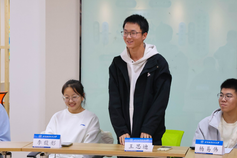 会上,宣讲团执行主席李泽铠汇报了宣讲团的工作成果和未来规划,“启航”宣讲团创新“启航+”宣讲模式,以北航校史文博资源、学院“心动”科教中心为依托,融合社会实践、志愿讲解、公益科普、党建引领等多个方面,营造独特的“场景式、沉浸式”宣讲风格。目前,科普讲解覆盖北航附小、人大附中、成都树德中学等12所学校,讲解校史、文博馆累计18场,服务人次超两万。