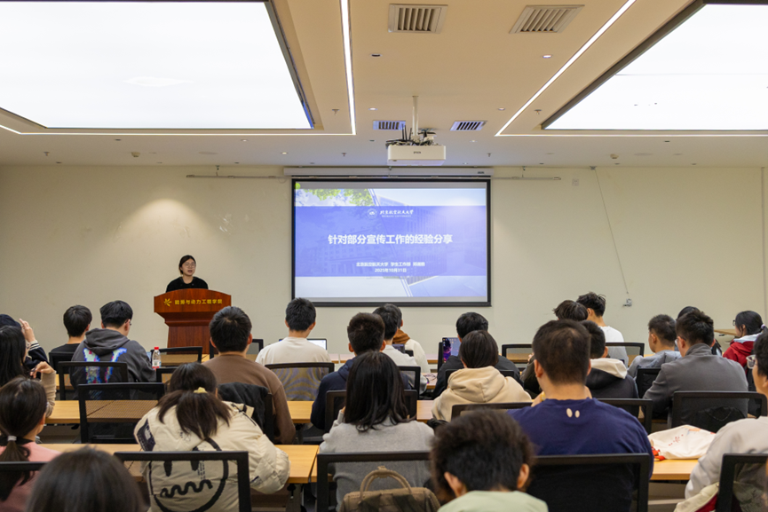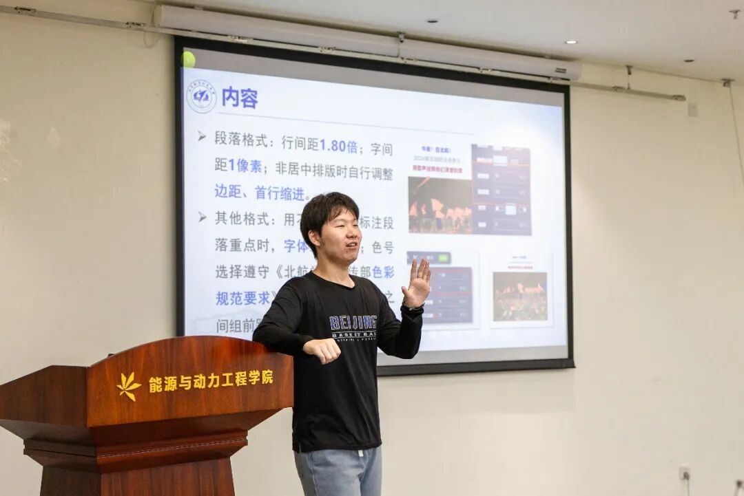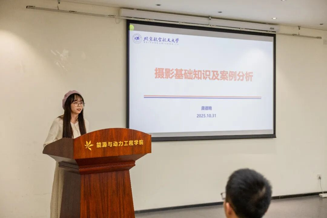 航小发工作室在F703-1举办宣传技能专题培训。本次培训特邀学生工作部郑崴鹤与航小萱摄影部龚德艳担任主讲,围绕新闻稿撰写、推送制作与新闻摄影三大板块展开系统讲解。