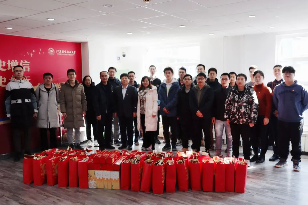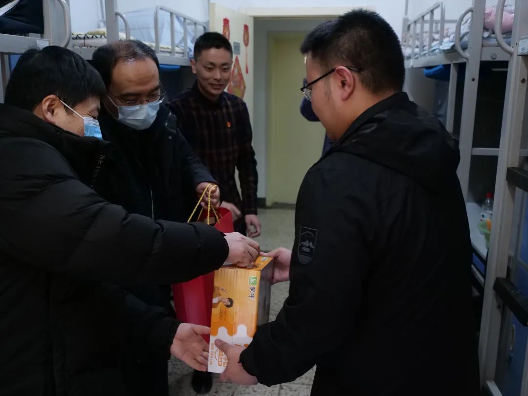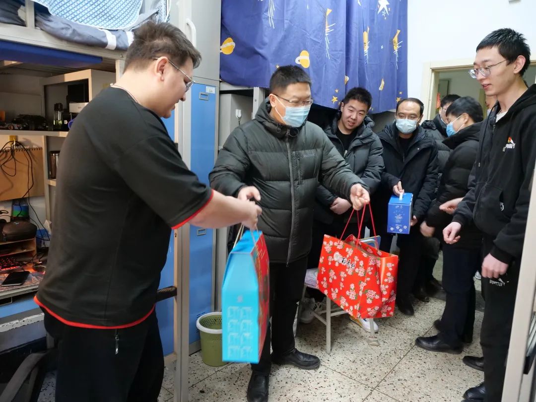 院长闫晓军,学院党委书记董卓宁等到宿舍楼慰问留校学生,与学生们亲切交流,询问留校学生的学业生活情况,并送去春节慰问品。