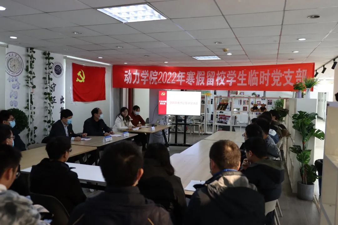 委员会关于成立2022年寒假留校学生临时党支部的决定》。党支部委员轮流发言表态,党支部书记张哲介绍支部工作计划。