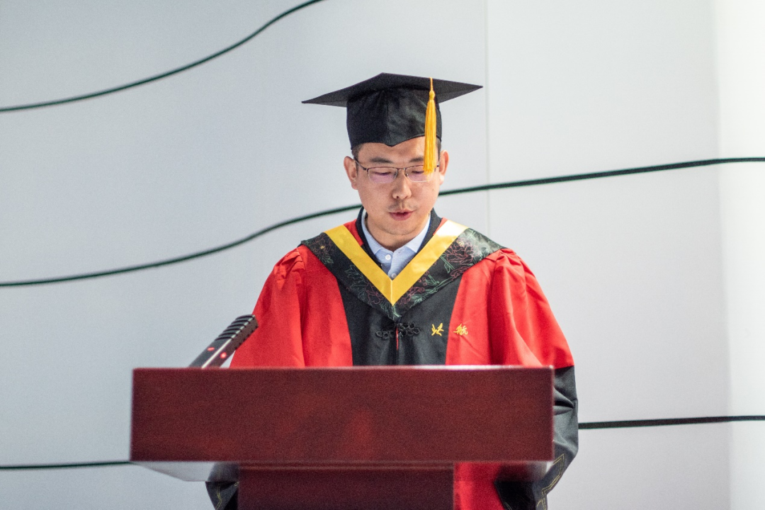 闫晓军院长代表学院向顺利完成学业的硕士及博士毕业生表示热烈祝贺,向辛勤付出的研究生导师和教职员工致以衷心的感谢。他回顾了这几年动力学子与国同行所经历的大事,肯定了同学们勇敢追梦、全面发展。闫晓军提出三点希望与2024届研究生毕业生共勉:第一,爱党报国,勇担时代重任。人生的理想各有不同,但胸怀“国之大者”,服务国之所需,无疑是最为高远的志向。第二,终身学习,锤炼过硬本领。“学如逆水行舟,不进则退”。只有坚持勤奋学习,才能不断进步、持续成长。第三,团结拼搏,凝聚奋进力量。“独行者速,众行者远”。懂团结是人生大格局,能拼搏才能学到真本领。