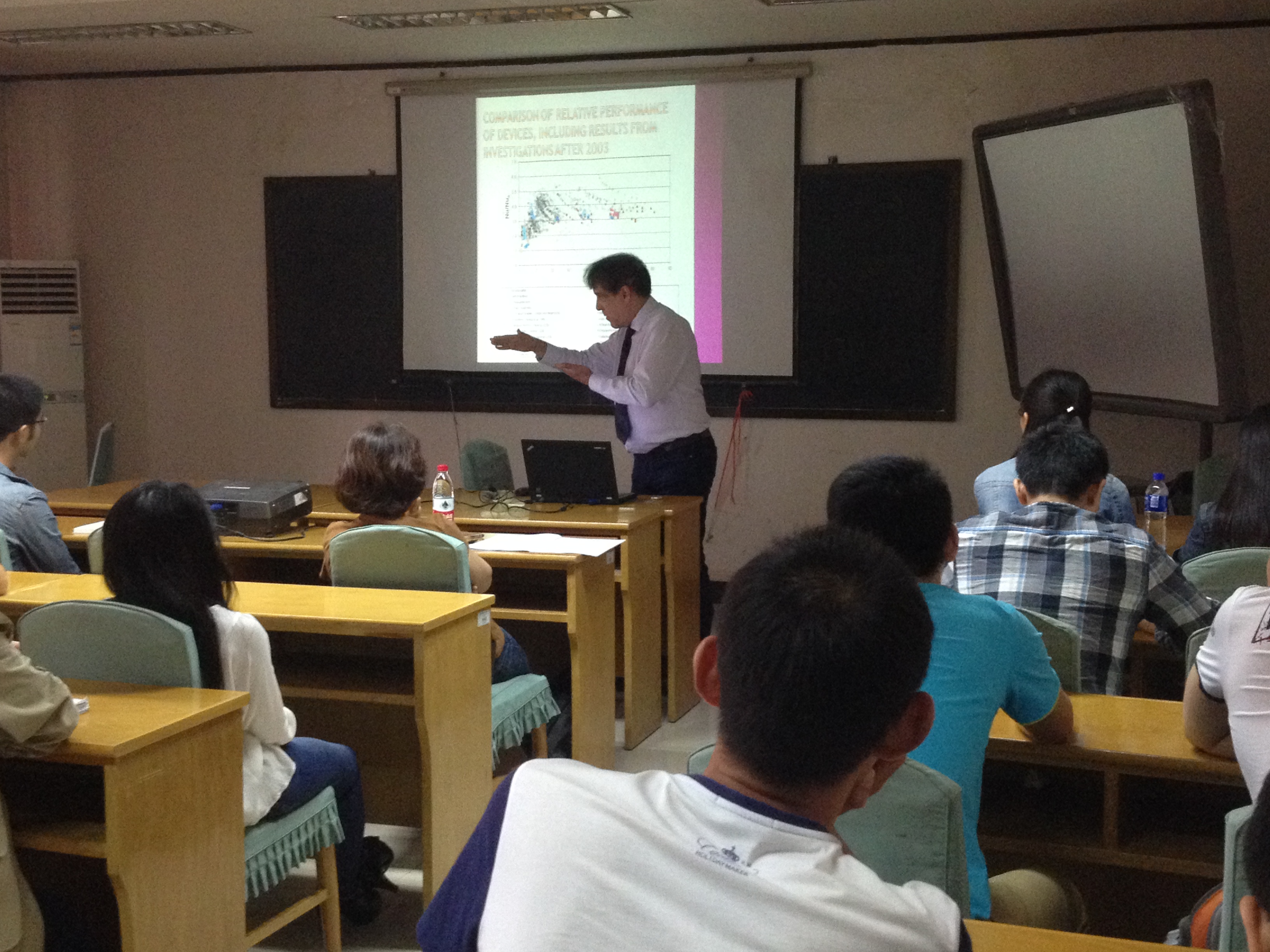 讲座中,Ligrani教授从燃气轮机部件的内部换热增强技术开始讲起,先深入到气膜冷却对燃气轮机的气动损失分析,之后又拓展到全覆盖气膜冷却技术在燃烧室中的具体应用等,内容丰富,精彩纷呈。Ligrani教授热心与学生交流互动,并以其渊博的学识和幽默的话语,使得同学不时在深思之中莞尔一笑。课程最后,同学们踊跃提问,Ligrani教授均一一解答,并为同学们的认真思考连连称赞。
