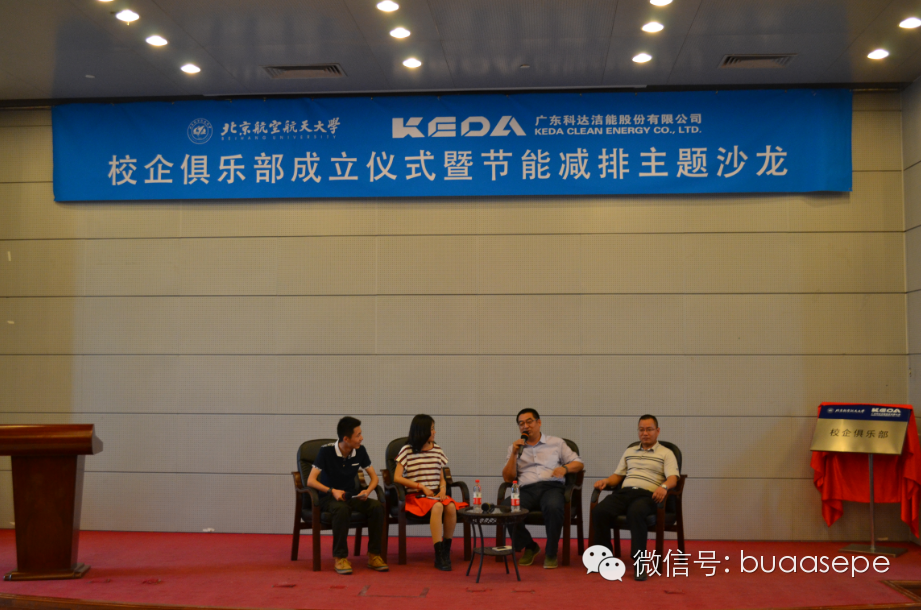 2015年4月26日下午4点,北航—科达洁能校企俱乐部成立仪式暨节能减排主题沙龙在沙河校区实4-205报告厅顺利举行。出席成立仪式的嘉宾有广东科达洁能股份有限公司董事长边程先生、北航耽美漫画