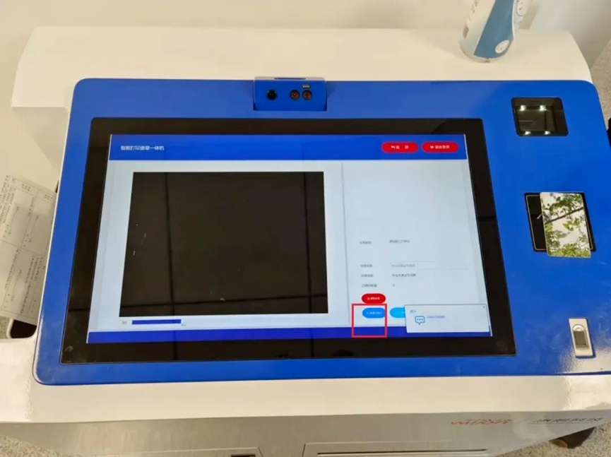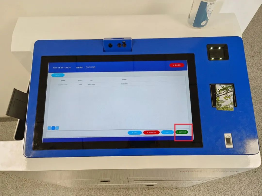 选择“开始用印”,待用印结束后,在同一界面,选择“出纸”,在机器右下方出纸口取出盖章后材料。